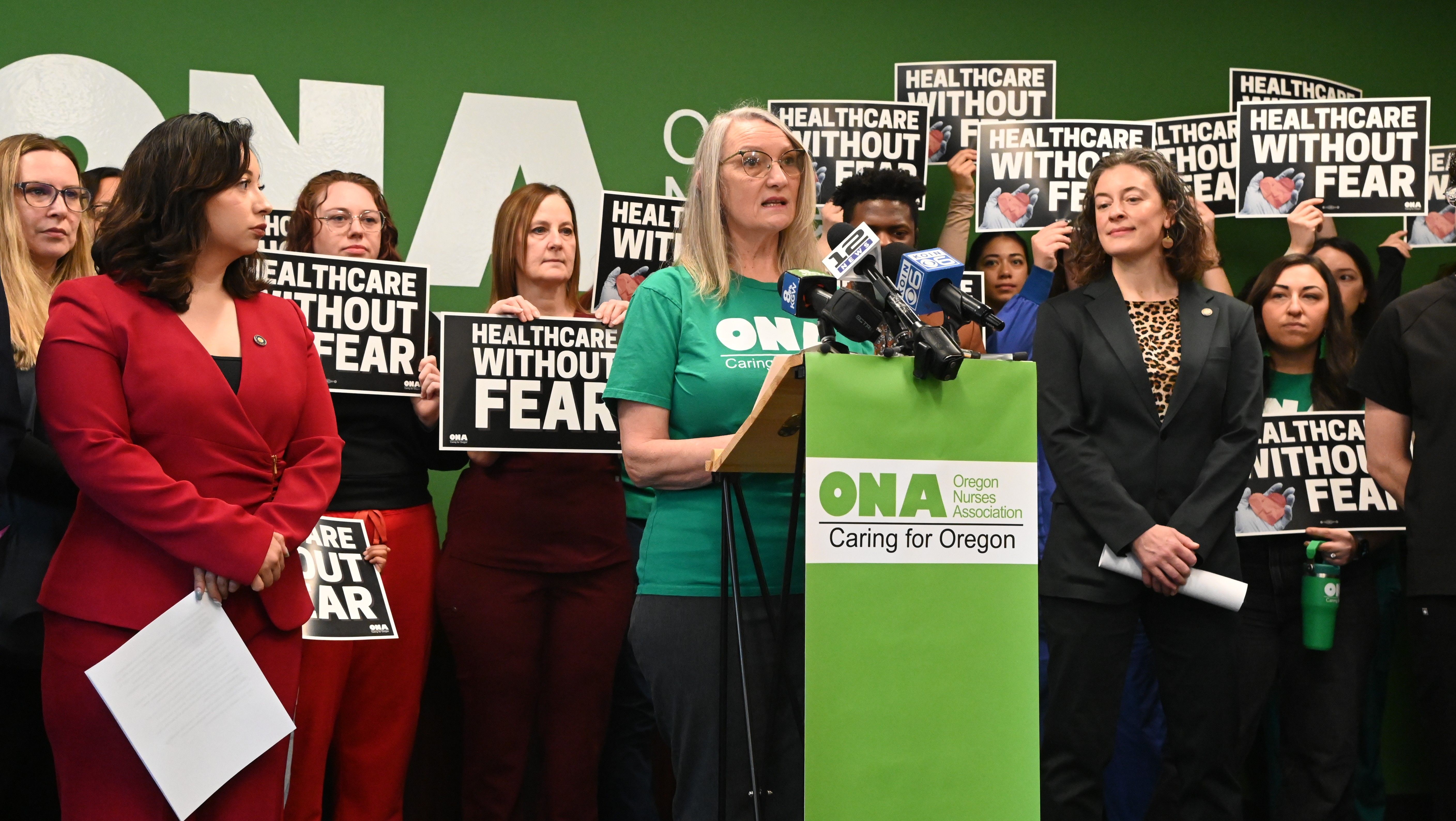 “Hospitals are places of healing, safety and trust. The Healthcare Without Fear Act ensures everyone has access to healthcare free from fear, intimidation or interference," said ONA President Tamie Cline, RN. “Oregonians won’t allow our healthcare to be dictated by a man with a gun. Mothers and fathers should be able to take their children to the emergency room without fearing for their safety. Everyone deserves to be treated with dignity, humanity and compassion.”