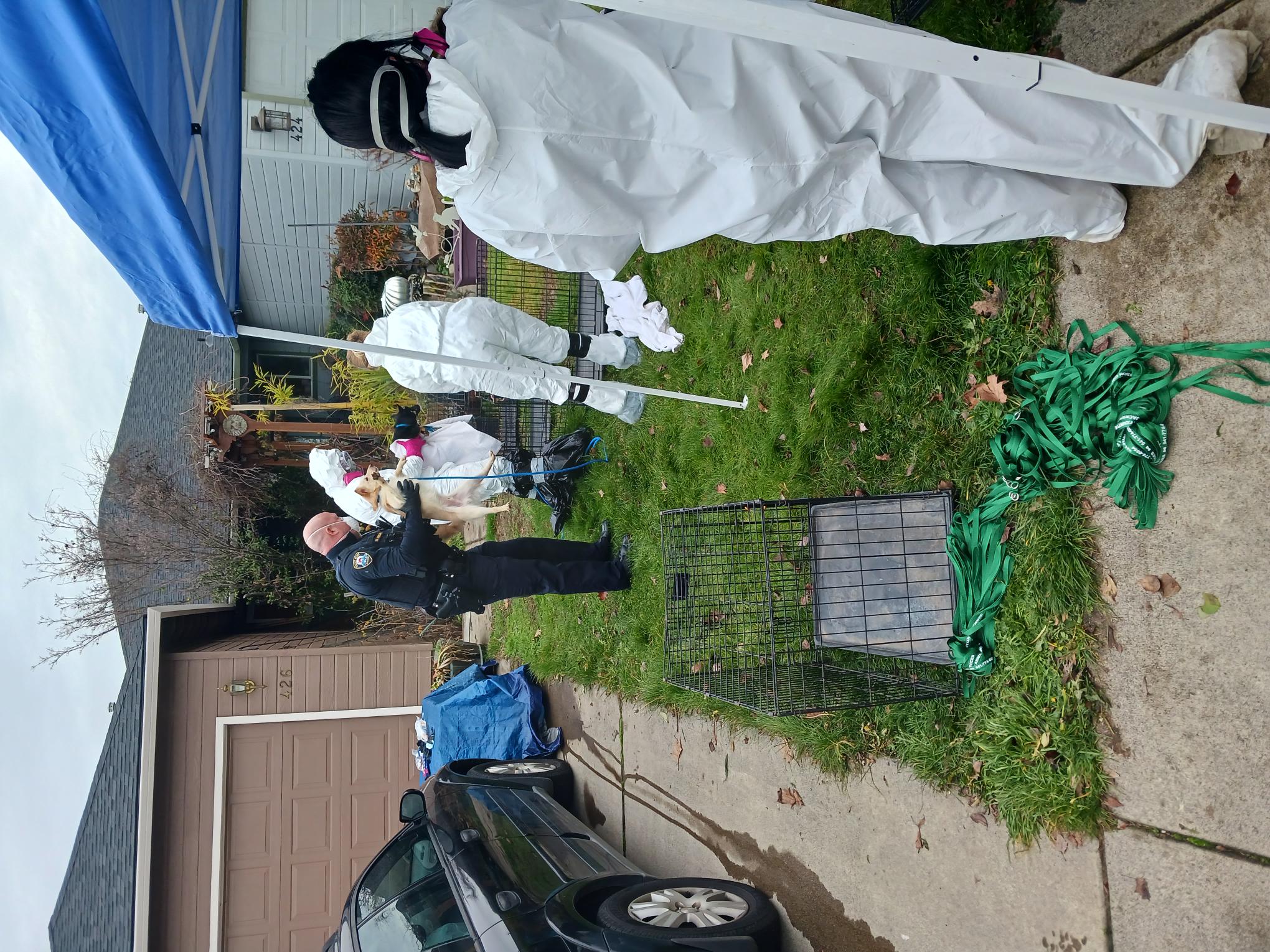 When officers attempted to serve the warrant, the resident was uncooperative and refused to come to the door. After negotiations, the resident, identified as Jana Tepper, eventually exited the residence and was detained. A second male occupant then refused to leave the residence. Due to the large number of dogs believed to be inside, officers attempted to remove the occupants without entering the home. When the male occupant continued to refuse to exit, officers entered the residence and safely escorted him outside.